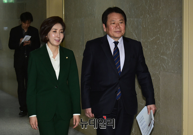 나경원 자유한국당 원내대표가 7일 오전 국회에서 열린 여야 3당 원내대표 회동에 참석하기 위해 운영위원장실로 향하고 있다.