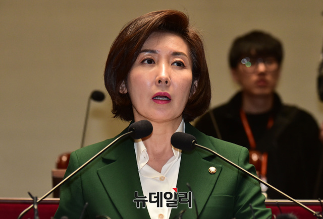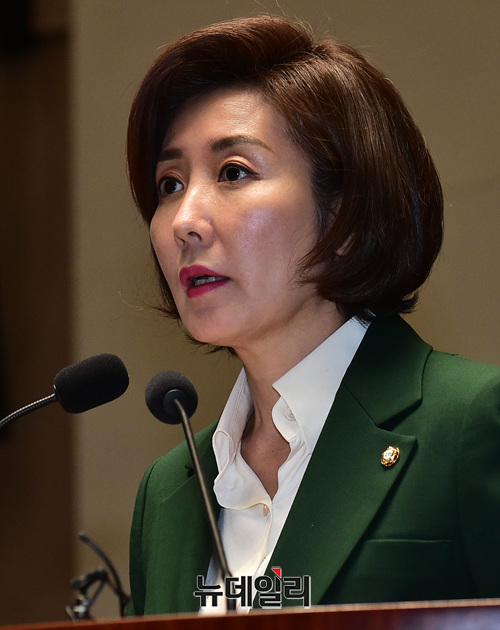 나경원 자유한국당 원내대표가 7일 오후 국회에서 열린 의원총회에서 모두발언을 하고 있다.