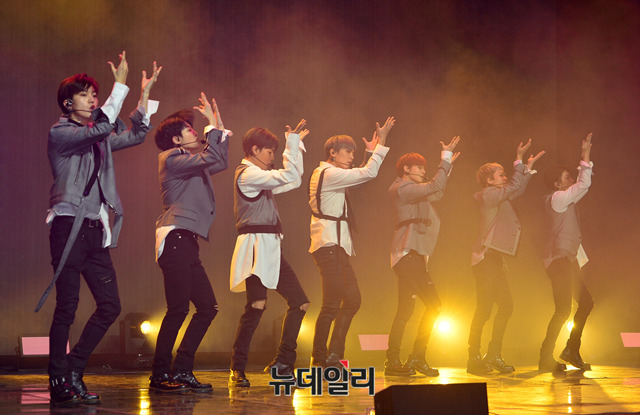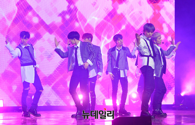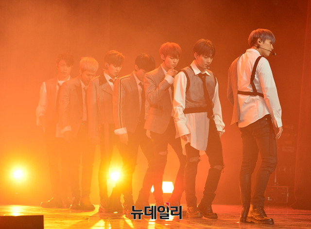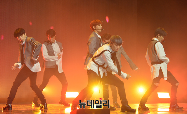 아이돌그룹 온앤오프(ONF)가 7일 오후 서울 송파구 올림픽공원 K-아트홀에서 열린 3집 미니앨범 발매기념 쇼케이스에서 퍼포먼스를 하고 있다.
