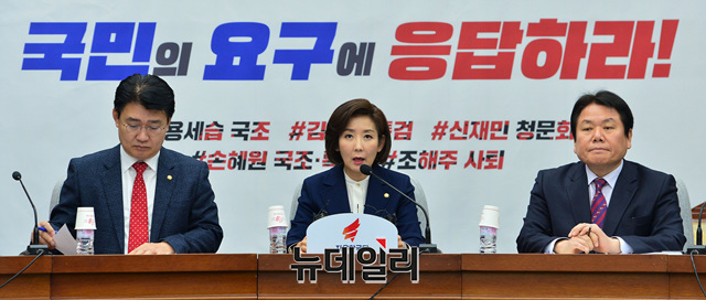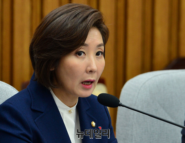 나경원 자유한국당 원내대표가 8일 오전 국회에서 열린 비상대책위원회의에서 모두발언을 하고 있다.