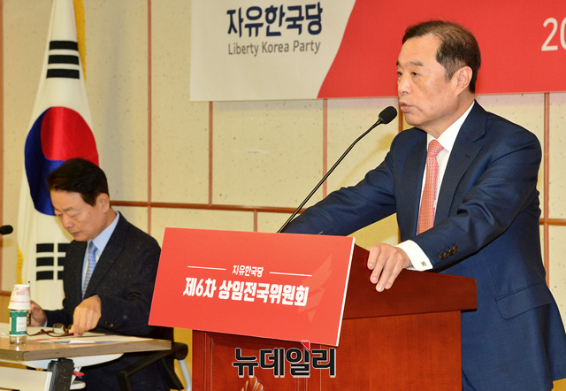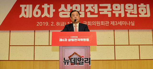 김병준 자유한국당 비상대책위원장이 8일 오전 국회의원회관에서 열린 제6차 상임전국위원회에서 인사말을 하고 있다.
