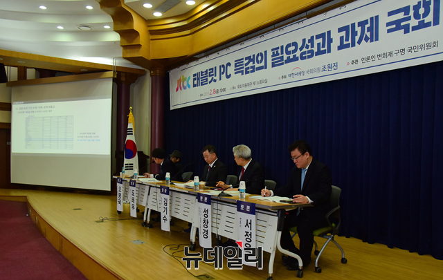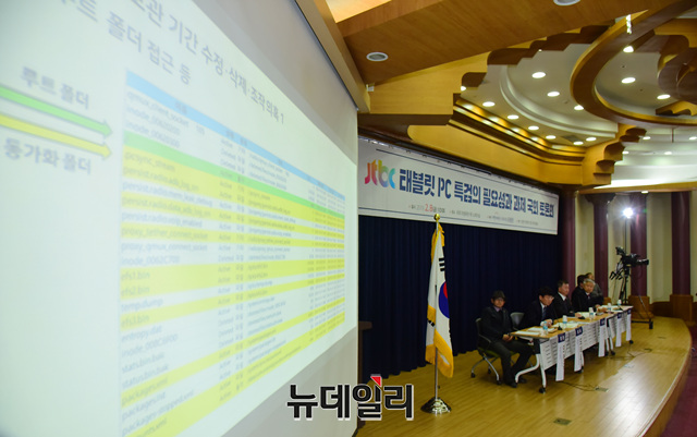도태우 법치와자유민주주의 대표가 8일 오전 국회 의원회관 제1소회의실에서 'JTBC 태블릿 PC 특검의 필요성과 과제'를 주제로 열린 토론회에 참석해 발표하고 있다.