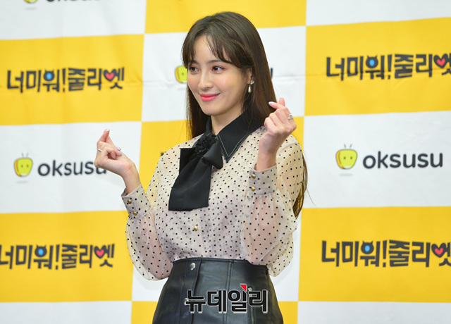배우 정혜성이 8일 서울 마포구 스탠포드호텔에서 열린 옥수수 오리지널 '너 미워! 줄리엣' 제작발표회에서 포토타임을 갖고 있다.