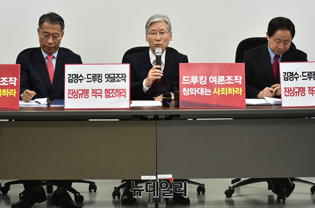 여상규 자유한국당 김경수·드루킹 댓글조작 부실수사 및 진상규명 특위원장이 11일 오전 국회에서 열린 회의에서 모두발언을 하고 있다.