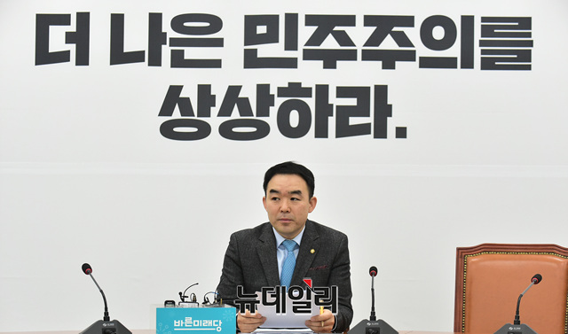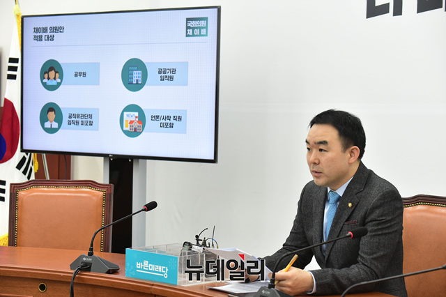 채이배 바른미래당 의원이 11일 오전 국회에서 이해충돌방지법 제정안 관련 기자간담회를 갖고 있다.