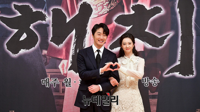 배우 정일우, 고아라가 11일 오전 서울 양천구 SBS사옥에서 열린 SBS 새 월화드라마 '해치(극본 김이영, 연출 이용석 남태진)' 제작보고회에서 포토타임을 갖고 있다.