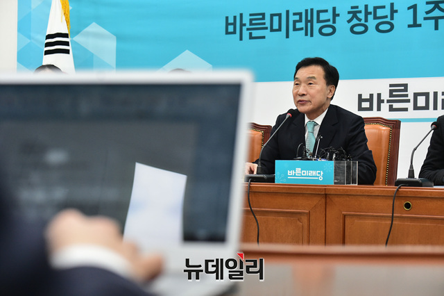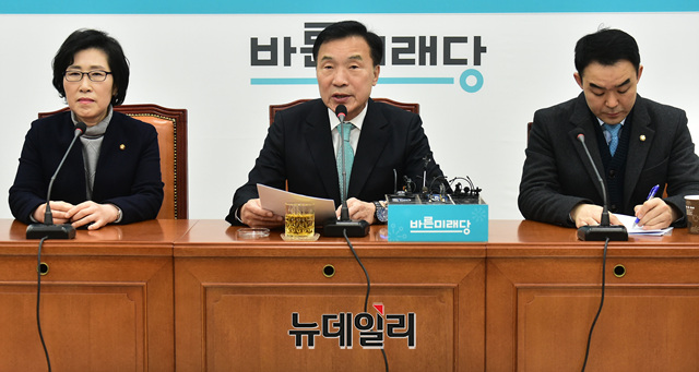 손학규 바른미래당 대표가 12일 오전 국회 당대표실에서 열린 창당 1주년 기자회견에서 기자들의 질문에 답하고 있다.