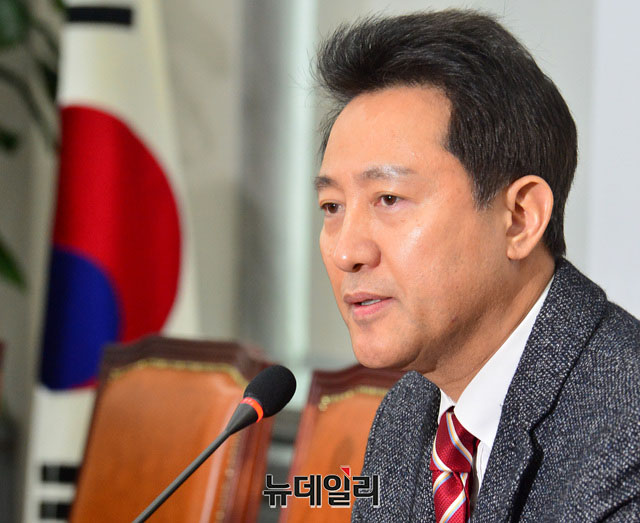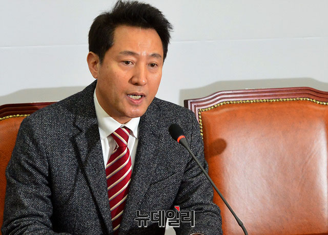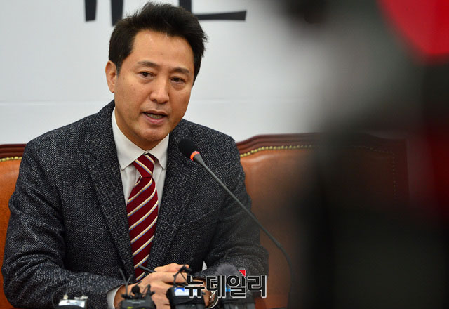 오세훈 전 서울시장이 12일 오전 국회에서 오는 27일에 있는 자유한국당 전당대회 당 대표 출마관련 기자회견을 하고 있다.