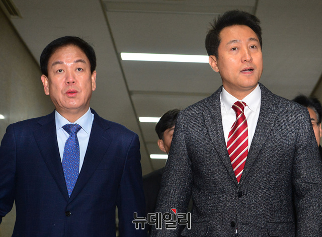 오세훈 전 서울시장이 12일 오전 국회에서 오는 27일에 있을 자유한국당 전당대회 기자회견을 하기 위해 자유한국당 대회의실에 입장하고 있다.