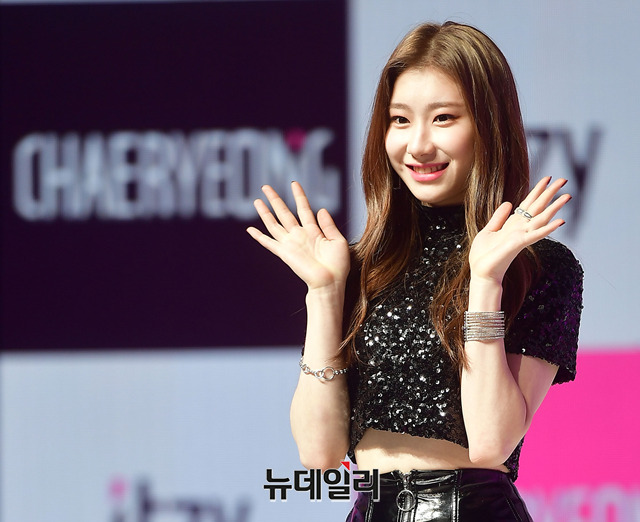 JYP엔터테인먼트 소속 신인걸그룹 'ITZY(있지)' 멤버 채령이 12일 오후 서울 용산구 블루스퀘어에서 열린 데뷔 쇼케이스에서 포토타임을 갖고 있다.