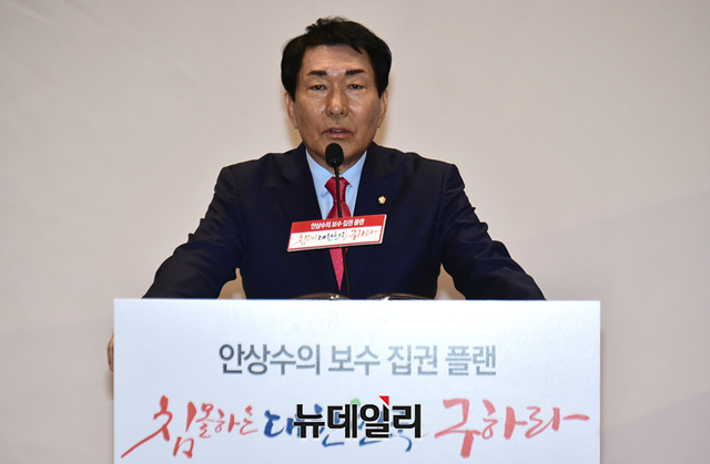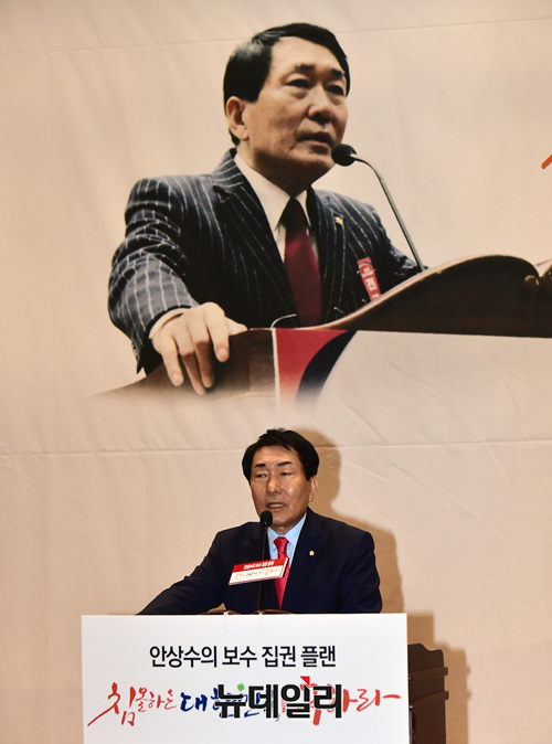 2.27 자유한국당 전당대회 당대표 불출마 선언을 한 안상수 의원이 12일 오후 국회 의원회관에서 열린 본인의 저서 '침몰하는 대한민국을 구하라' 출판기념회에서 인사말을 하고 있다.