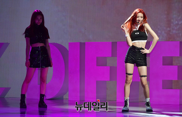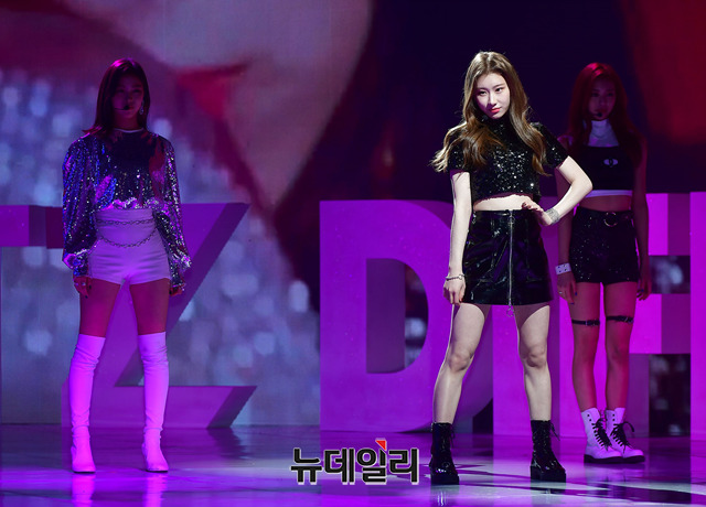 JYP엔터테인먼트 소속 신인걸그룹 'ITZY(있지)'가 12일 오후 서울 용산구 블루스퀘어에서 열린 데뷔 쇼케이스 무대에 올라 멤버들을 선보이고 있다.