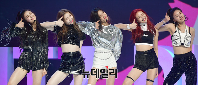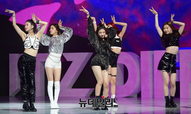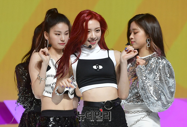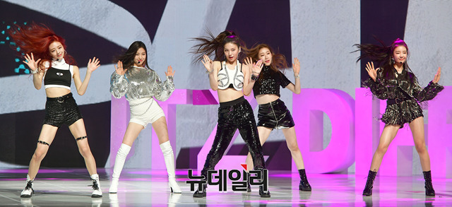 JYP엔터테인먼트 소속 신인걸그룹 'ITZY(있지)'가 12일 오후 서울 용산구 블루스퀘어에서 열린 데뷔 쇼케이스에서 타이틀곡 달라달라 무대를 선보이고 있다.