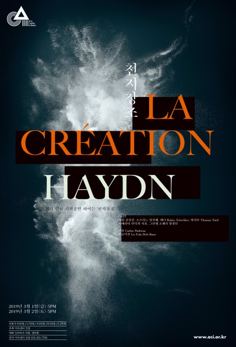 정통 클래식과 혁신적인 비주얼 아트가 만났다.스페인의 비주얼 아트그룹 라 푸라 델스 바우스가 제작한 하이든의 오라토리오 '천지창조'가 아트센터 인천(ACI)의 2019년 시즌 개막공연으로 3월 1일과 2일 양일간 펼쳐진다.'천지창조'는 필하모니 드 파리, 독일 엘프필하모니홀, 대만 가오슝 아트센터 등 전 세계 유명 극장의 오프닝을 장식한 작품이다. 이번 공연은 국내 초연이자 아트센터 인천 단독 개최작이다.1000리터가 넘는 수조, 와이어 연출을 위한 크레인, 프로젝션 맵핑 등 기존 클래식 공연에서 상상할 수 없는 독창적 무대연출을 선보인다.연주는 고음악의 디바 소프라노 임선혜, 빈 국립극장과 라 스칼라에 데뷔한 젊은 베이스바리톤 토마스 타츨, 테너 로빈 트리췰러가 솔리스트로 나선다. 고음악 전문연주단체카메라타 안티콰 서울과 그란데 오페라 합창단, 지휘자 김성진이 참여한다.2017년 6월 독일 함부르크 엘프필하모니홀 오프닝 공연 무대에 오른 바 있는 임선혜는 "쉬는 시간 없이 진행된 라 푸라 델스 바우스 표 '천지창조'는 이 음악으로 표현될 수 있는 무대에 대한 새로운 지평을 열어준 신선한 충격이었다"고 전했다.라 푸라 델스 바우스는 카를로스 파드리사가 이끄는 크리에이티브 그룹으로 비주얼 아트와 디지털 드라마, 현대 연극 및 오페라 공연으로 세계에서 가장 혁신적인 공연예술을 선보여 왔다.1992년 바르셀로나 올림픽 개막식 연출을 맡으며 세계적으로 많은 관심을 받았고, 한국에서는 2011년과 2012년 하이서울 페스티벌에 참여한 바 있다.