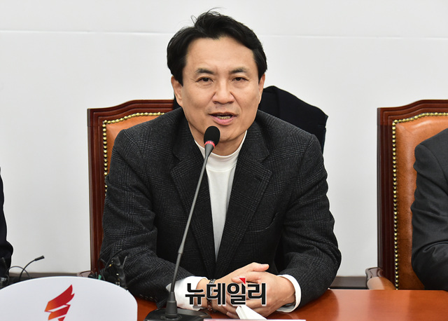 자유한국당 2.27 전당대회 당권에 도전하는 김진태 의원이 13일 오전 국회에서 열린 자유한국당 선관위 회의에 참석해 모두발언을 하고 있다.