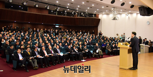 손학규 바른미래당 대표가 13일 오후 국회도서관에서 열린 '바른미래당 창당 1주년 기념식'에서 인사말을 하고 있다.