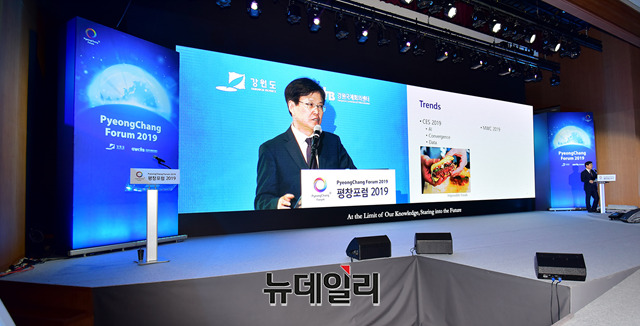 최양희 전 미래창조과학부 장관이 13일 오후 강원 평창 알펜시아리조트 컨벤션센터에서 열린 '평창포럼 2019' 개막식에서 '디지털 파워 명·암 대처'를 주제로 기조연설을 하고 있다.'평창포럼2019'는 '지식의 경계에서 바라본 지구 미래(At the Limit of Our Knowledge, Staring into the Future)‘를 주제로 지구와 인류의 공동번영을 목표로 모인 세계 각지의 전문가들과 정부, 강원도 관계자, UN관계자, NGO, 일반 참가자 등 1,000여명이 참여해 13일부터 15일까지 진행된다.2018평창동계올림픽의 유산으로 지난해 출범한 '평창포럼'은 인류 공동번영을 위해 지구의 다양하고 복잡한 문제를 공유하고, 행동과 실천을 이끌어내는 대중적 포럼이다. 강원도가 주최하고, 강원국제회의센터가 주관한다. (강원 평창=정상윤 기자)