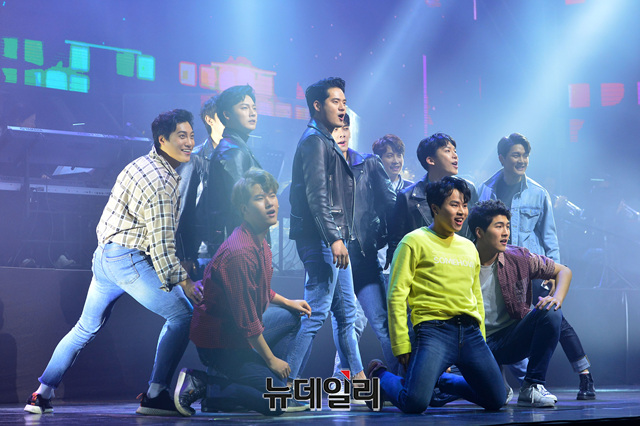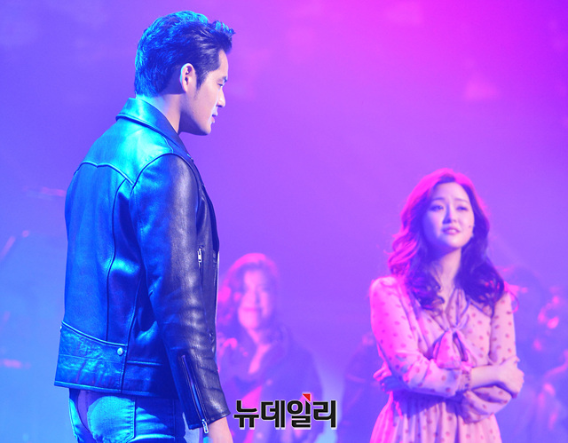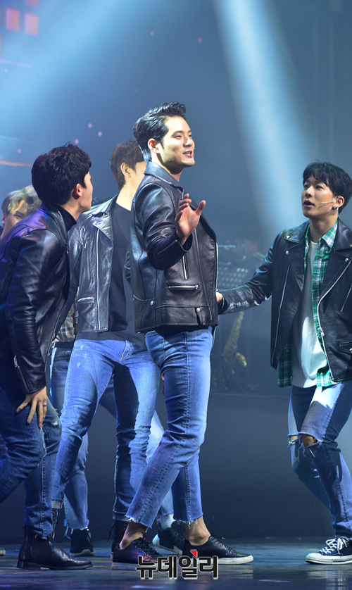 뮤지컬 배우 서경수가 13일 오후 서울 광진구 예스24 라이브홀에서 열린 뮤지컬 '그리스' 제작발표회 및 쇼케이스에서 공연을 선보이고 있다.
