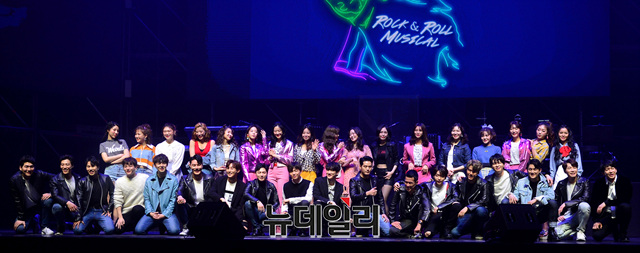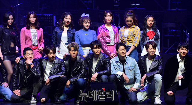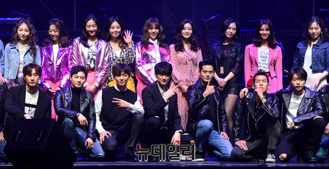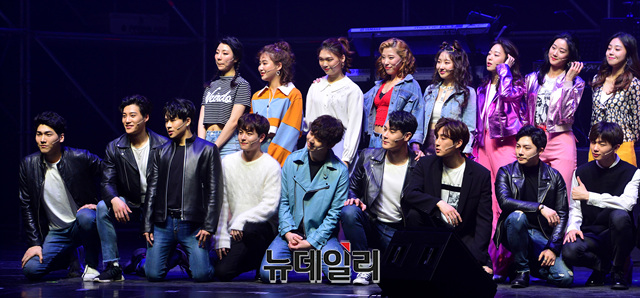 뮤지컬 '그리스' 출연진이 13일 오후 서울 광진구 예스24 라이브홀에서 열린 '그리스' 제작발표회 및 쇼케이스에서 포토타임을 갖고 있다.