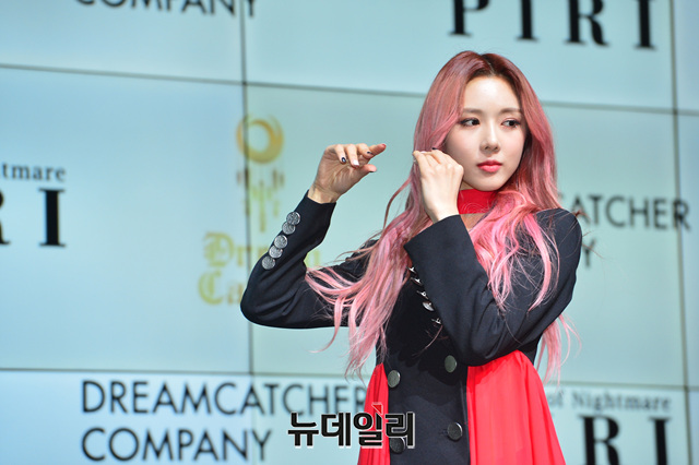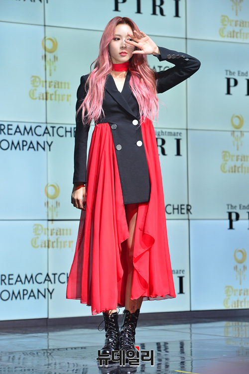 드림캐쳐 유현이 13일 오후 서울 강남구 슈피겐홀에서 열린 네번째 미니앨범 'The End of Nightmare' 쇼케이스에서 포토타임을 갖고 있다.
