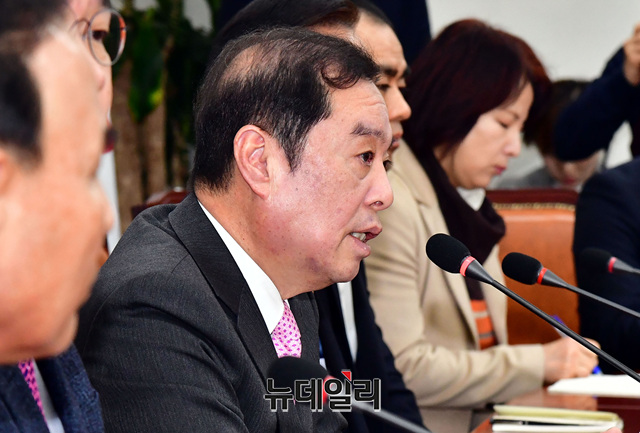 김병준 자유한국당 비상대책위원장이 14일 오전 국회에서 열린 비상대책위원회의에 참석해 발언을 하고 있다.