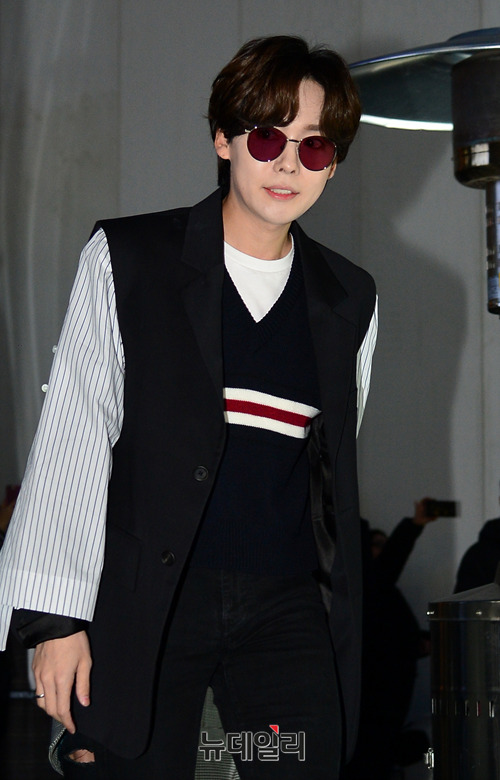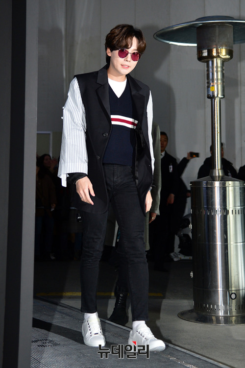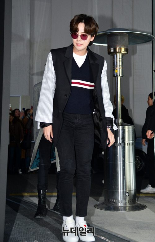 위너 김진우가 14일 오후 서울 강남구 가로수길에서 아이웨어 브랜드 '젠틀몬스터(GENTLE MONSTER)' 컬렉션 '13' 런칭행사에 입장하고 있다.