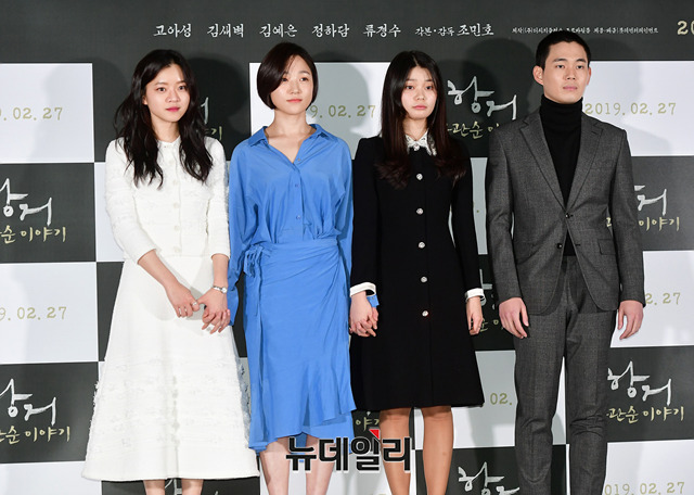 배우 정하담(왼쪽부터), 김예은, 정하담, 류경수가 15일 오후 서울 광진구 롯데시네마 건대입구점에서 열린 영화 '항거(각본·감독 조민호)' 언론시사회에서 포토타임을 갖고 있다. 27일 개봉.