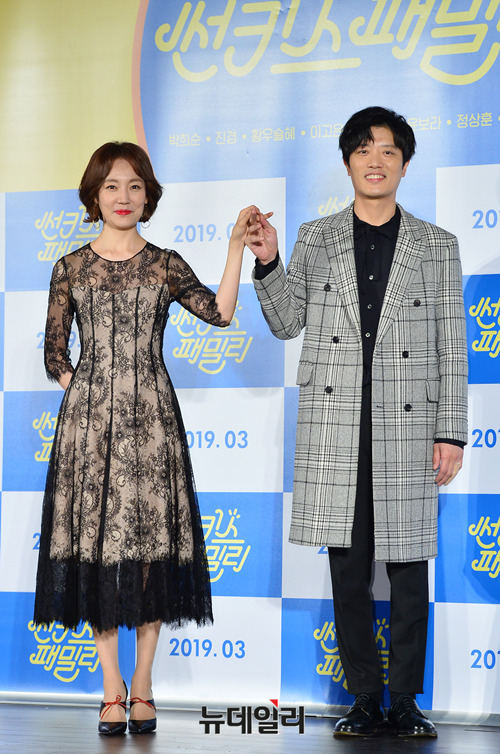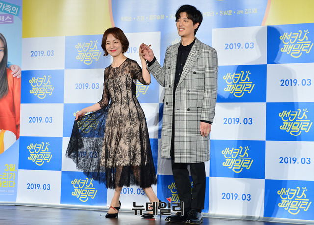 배우 박희순과 진경이 18일 서울 중구 메가박스 동대문에서 열린 영화 '썬키스 패밀리' 제작보고회에 참석해 포토타임을 갖고 있다.