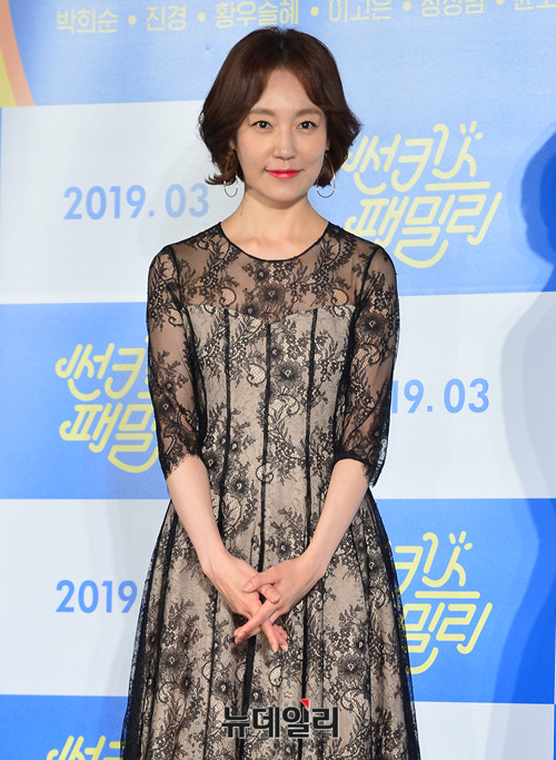 배우 진경이 18일 서울 중구 메가박스 동대문에서 열린 영화 '썬키스 패밀리' 제작보고회에 참석해 포토타임을 갖고 있다.