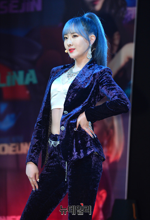 워너비(WANNA.B) 은솜이 19일 오후 서울 강남구 일지아트홀에서 열린 네 번째 디지털 싱글 앨범 'LEGGO(레고)' 쇼케이스에서 포토타임을 갖고 있다.