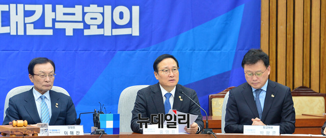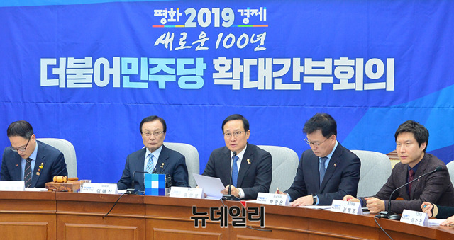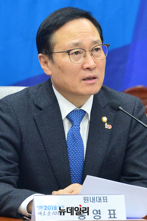홍영표 더불어민주당 원내대표가 20일 오전 국회에서 열린 확대간부회의에서 모두발언을 하고 있다.