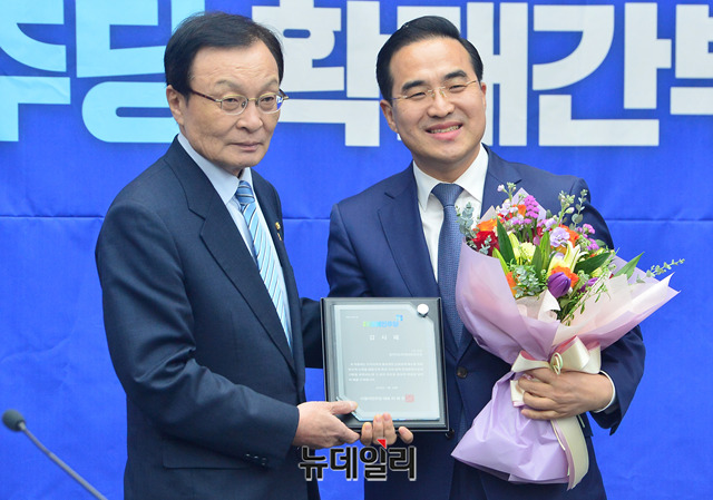 [포토] 감사패 전달받는 박홍근 민주당 을지로위원장