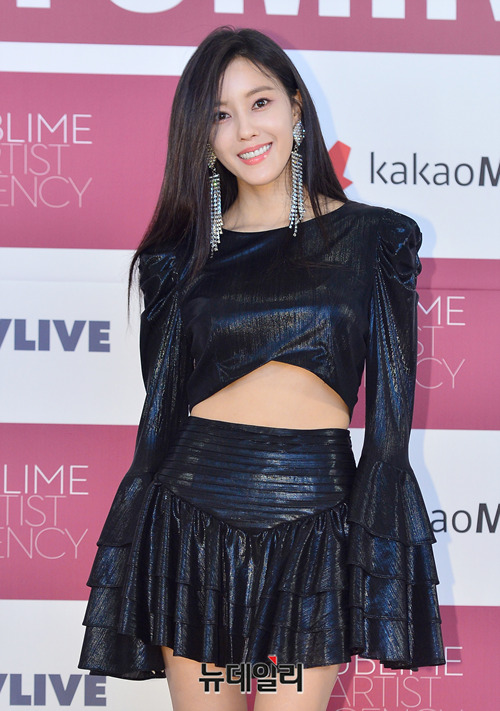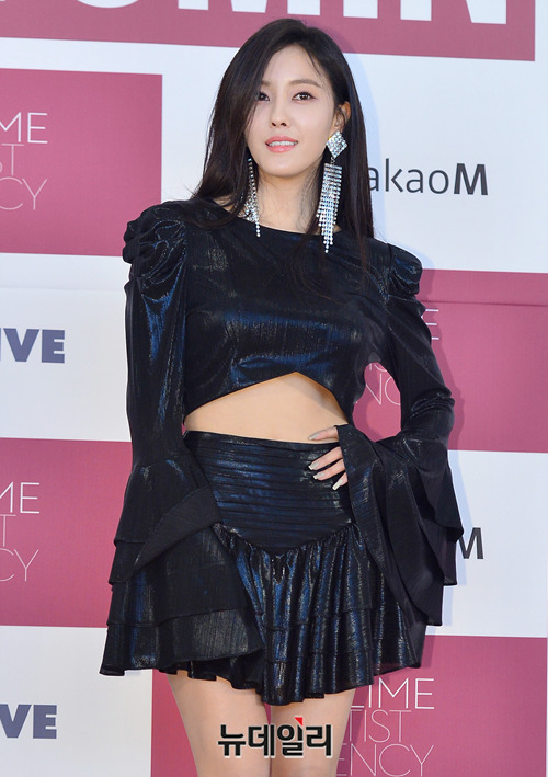 가수 효민이 20일 오후 서울 중구 동대문디자인플라자(DDP) 살림터 히노스레시피에서 열린 세 번째 미니앨범 'Allure(얼루어)' 발매 기념 기자간담회에서 포토타임을 갖고 있다.