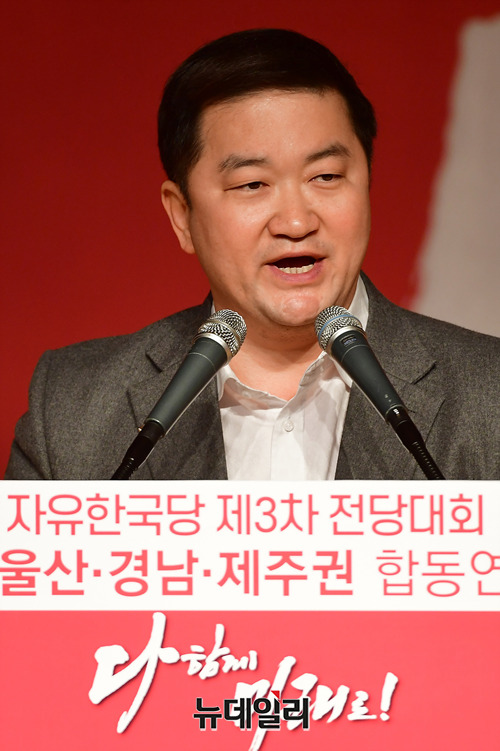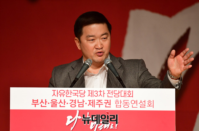 조대원 자유한국당 최고위원 후보가 21일 오후 부산 해운대구 벡스코에서 열린 2·27 전당대회 부산·울산·경남·제주권 합동연설회에서 정견발표를 하고 있다. (부산=정상윤 기자)
