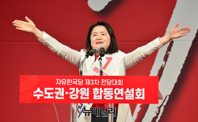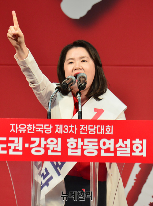 신보라 자유한국당 청년위원 후보가 22일 오후 경기 성남 실내체육관에서 열린 2·27 전당대회 서울인천경기강원권 합동연설회에서 지지를 호소하고 있다. (경기 성남=박성원 기자)