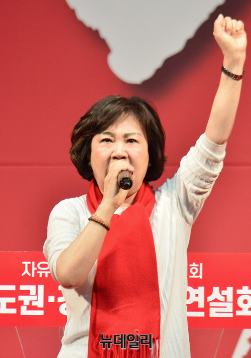 김순례 자유한국당 최고위원 후보가 22일 오후 경기 성남시 성남실내체육관에서 열린 2·27 전당대회 수도권·강원권 합동연설회에서 정견발표를 하고 있다. 전당대회는 전당대회는 미북정상회담이 진행되는 27일 일산 킨텍스에서 진행된다. (경기 성남=박성원 기자)