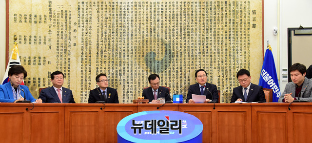홍영표 더불어민주당 원내대표가 25일 오전 국회 당대표회의실에서 열린 최고위원회의에서 모두발언을 하고 있다.