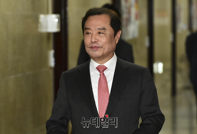 김병준 자유한국당 비상대책위원장이 25일 오전 국회 자유한국당 대회의실에서 열린 기자간담회에 참석하기 위해 입장하고 있다.