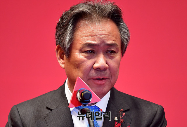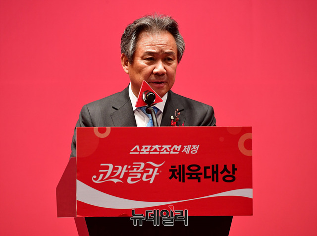 이기흥 대한체육회장이 25일 오전 서울 중구 웨스틴조선 호텔에서 열린 '제 24회 코카-콜라 체육대상' 시상식에서 축사를 하고 있다.