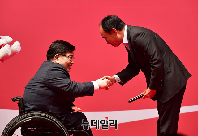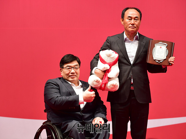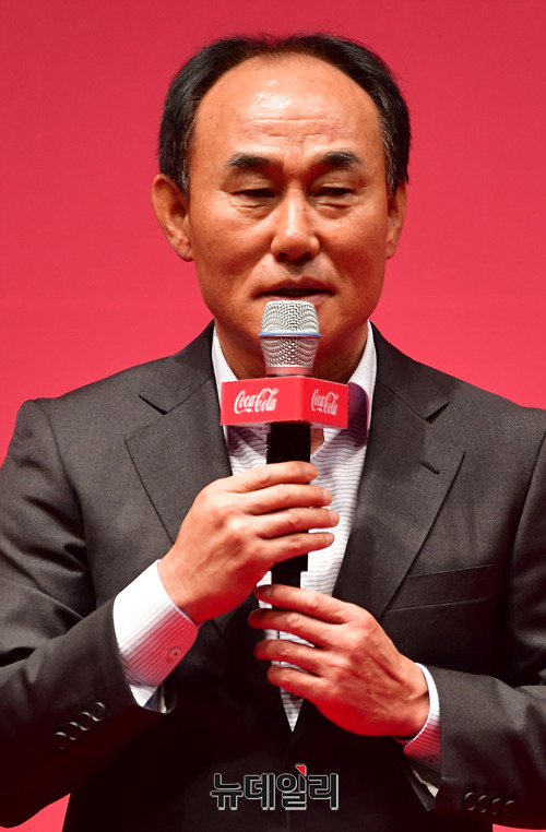 김학범 감독이 25일 오전 서울 중구 웨스틴조선 호텔에서 열린 '제 24회 코카-콜라 체육대상' 시상식에서 수상소감을 밝히고 있다. 김 감독은 우수지도자상을 수상했다.