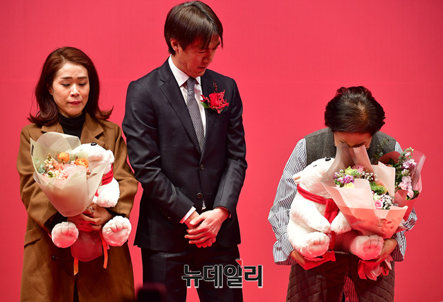 [포토] 특별상 대리 수상하는 故이민혜 사이클 선수 가족