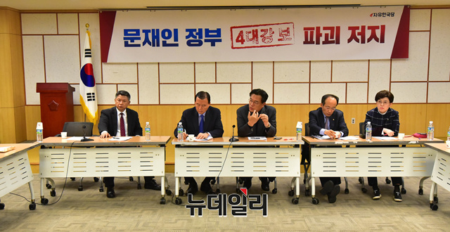 자유한국당 문재인 정부 4대강 보 파괴 저지 특별위원회 회의가 26일 오전 국회 의원회관에서 열리고 있다.