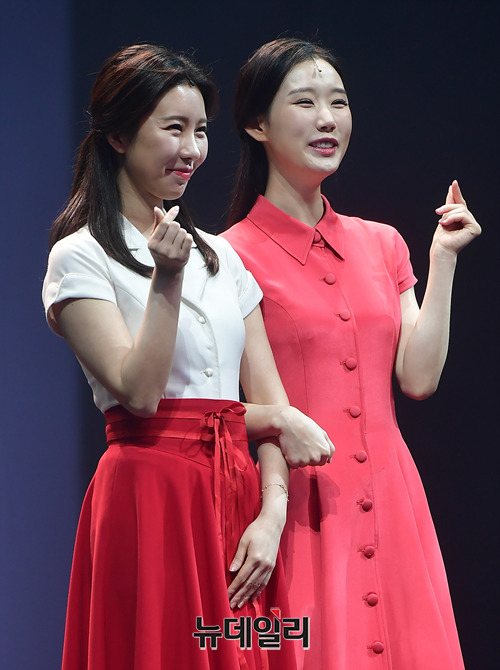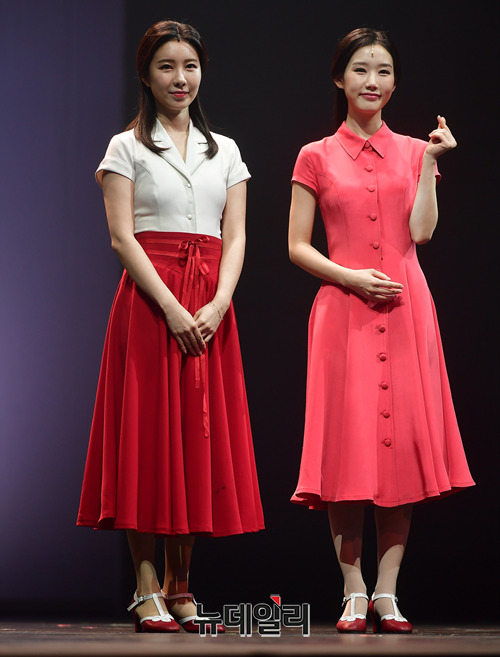 그녀 역을 맡은 배우 최서연, 제이민이 26일 오후 서울 용산구 블루스퀘어 인터파크홀에서 열린 창작 뮤지컬 그날들 프레스콜에서 포토타임을 갖고 있다. 故 김광석의 노래로 만들어진 창작 뮤지컬 그날들은 5월 6일까지 무대에 오른다.