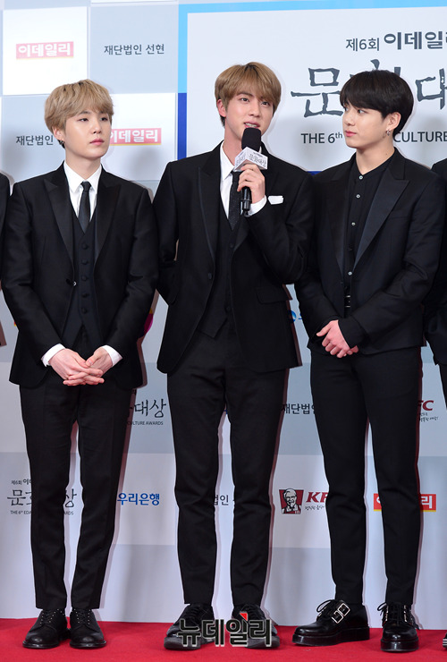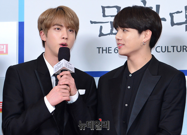 방탄소년단(BTS) 진이 26일 오후 서울 중구 세종문화회관에서 열린 '이데일리 문화대상' 시상식에 앞서 포토타임을 갖고 있다. 올해 6회를 맞은 '이데일리 문화대상'은 국내외 문화산업 종사자들의 사기진작과 문화산업의 발전을 도모하기 위해 제정한 상이다. 공연예술 전체를 대상으로 대상, 6개 부문별 최우수상, 특별상을 시상한다.