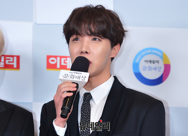 방탄소년단(BTS) 제이홉이 26일 오후 서울 중구 세종문화회관에서 열린 '이데일리 문화대상' 시상식에 앞서 인사말을 하고 있다. 올해 6회를 맞은 '이데일리 문화대상'은 국내외 문화산업 종사자들의 사기진작과 문화산업의 발전을 도모하기 위해 제정한 상이다. 공연예술 전체를 대상으로 대상, 6개 부문별 최우수상, 특별상을 시상한다.