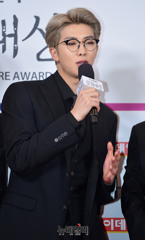 방탄소년단(BTS) RM이 26일 오후 서울 중구 세종문화회관에서 열린 '이데일리 문화대상' 시상식에 앞서 인사말을 하고 있다. 올해 6회를 맞은 '이데일리 문화대상'은 국내외 문화산업 종사자들의 사기진작과 문화산업의 발전을 도모하기 위해 제정한 상이다. 공연예술 전체를 대상으로 대상, 6개 부문별 최우수상, 특별상을 시상한다.