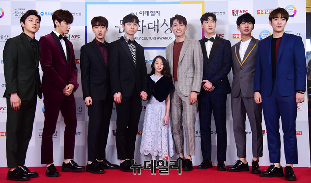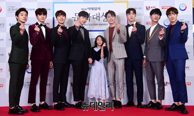 아이돌그룹 더맨블랙과 아역배우 수련이 26일 오후 서울 중구 세종문화회관에서 열린 '이데일리 문화대상' 시상식에 앞서 포토타임을 갖고 있다. 올해 6회를 맞은 '이데일리 문화대상'은 국내·외 문화산업 종사자들의 사기진작과 문화산업의 발전을 도모하기 위해 제정한 상이다. 공연예술 전체를 대상으로 대상, 6개 부문별 최우수상, 특별상을 시상한다.