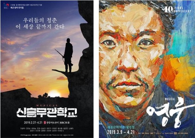 뮤지컬 '영웅', '신흥무관학교', '윤동주, 달을 쏘다', '여명의 눈동자'가 대표적인 작품들로 2월 3주 차 인터파크티켓 주간 랭킹에서 창작뮤지컬 부문 상위 10위권 안에 3작품이 올라 있다.