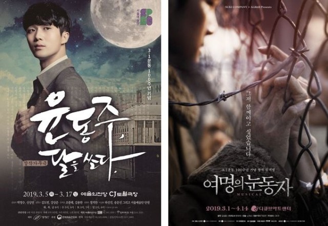 MBC 드라마 '여명의 눈동자'(1991)도 3.1운동 100주년을 맞아 뮤지컬 무대로 부활했다. 3. 1절 당일 개막해 4월 14일까지 디큐브아트센터에서 초연된다. 전체 예매자 중 40대 이상 관객 비중이 24.6%로 일반적인 뮤지컬에 비해 높은데, 28년 전 드라마로 접했던 애청자들의 예매가 많은 것으로 분석된다.