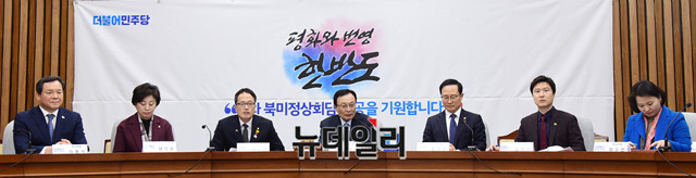 이해찬 더불어민주당 대표가 미북정상회담이 열리는 27일 오전 국회에서 열린 확대간부회의에서 모두발언을 하고 있다.